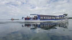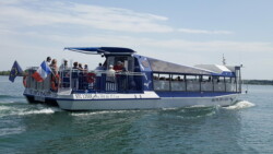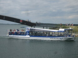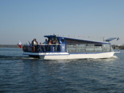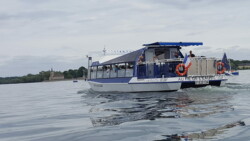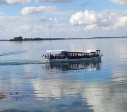 Le bateau « Au fil de l’eau », navigue sur le lac du Der. Le départ de la balade s’effectue au port de Giffaumont.